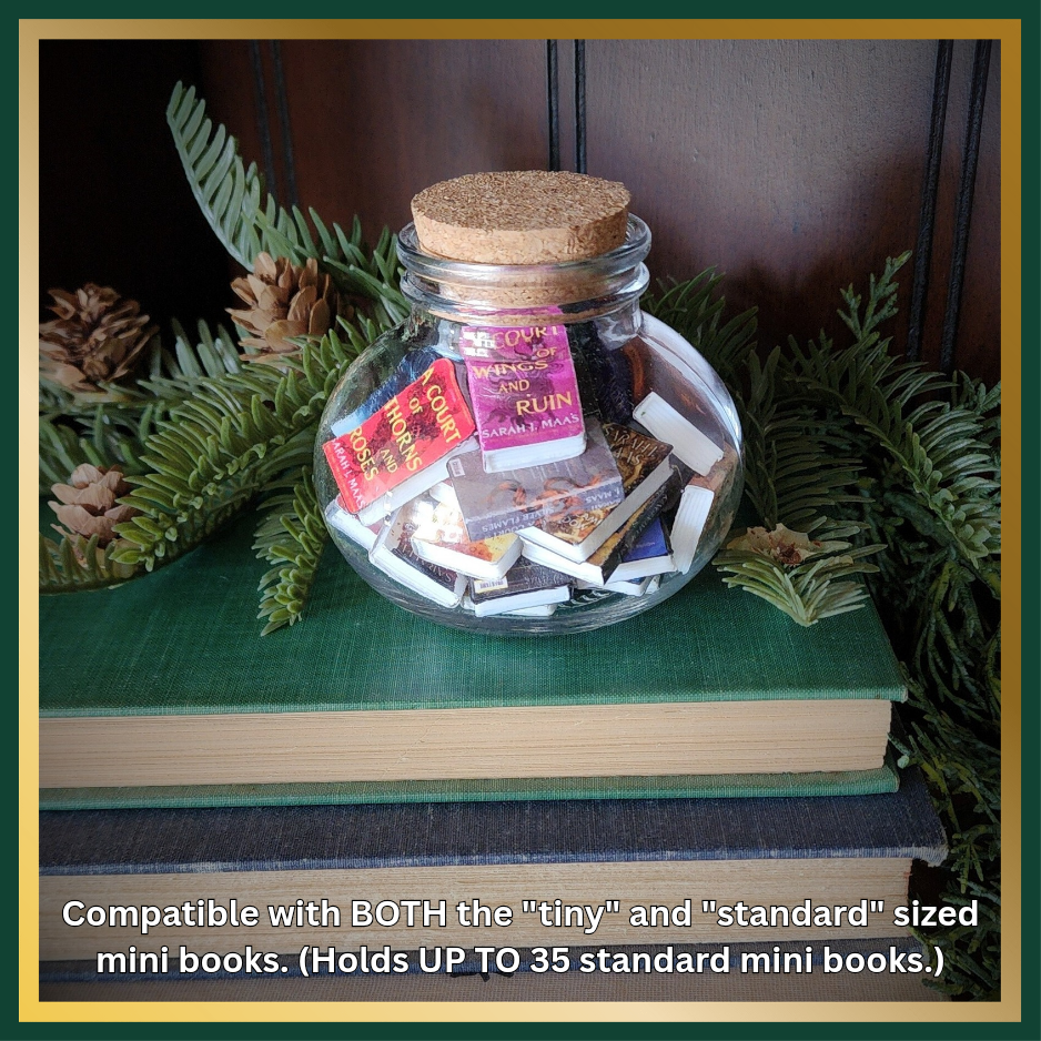 This adorable glass jar can hold up to 35 "standard" sized mini books! Use it to track the books you've read this year, visualize your TBR list, or simply fill with your favorites!