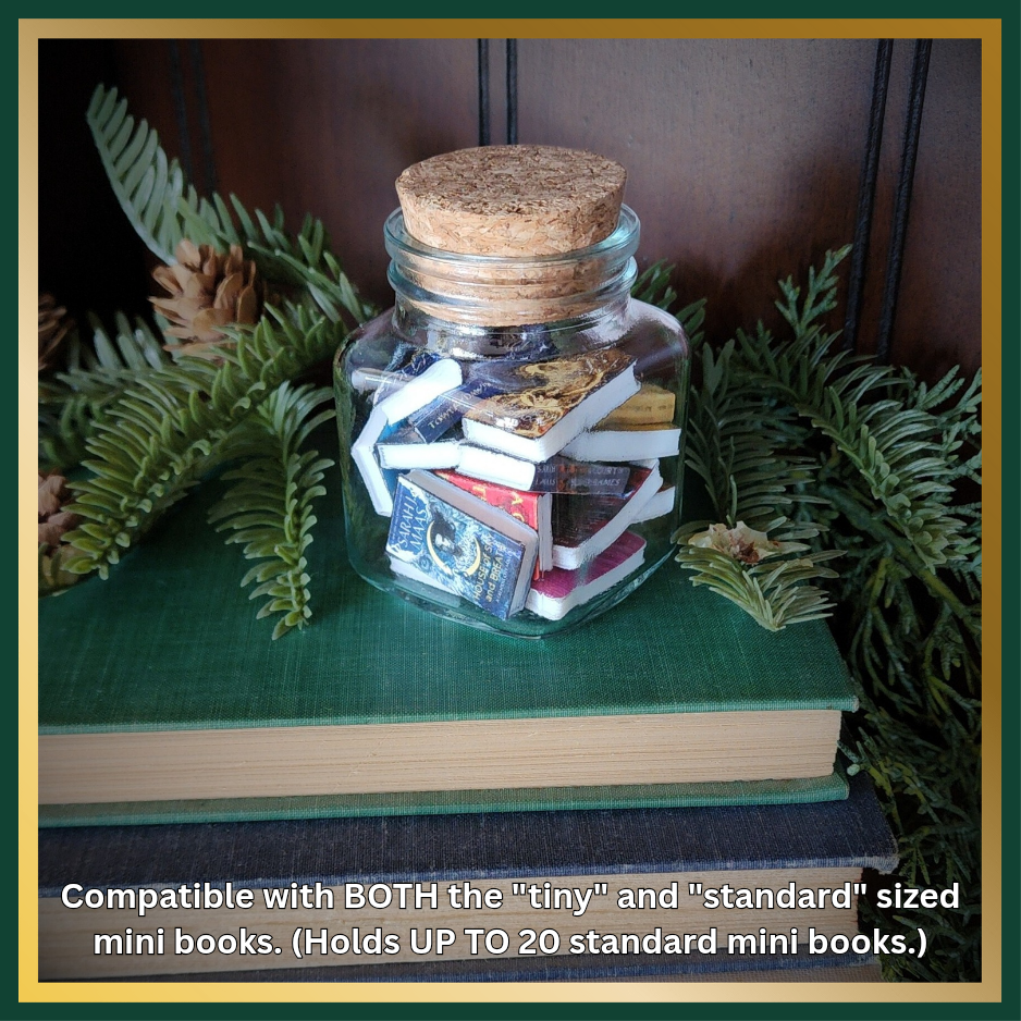 This adorable glass jar can hold up to 20 "standard" sized mini books! Use it to track the books you've read this year, visualize your TBR list, or simply fill with your favorites!